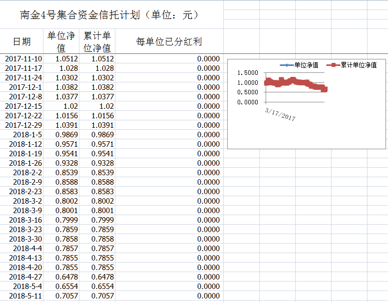 湖南信托-南金4号集合资金信托计划净值披露(2018年5月11日)