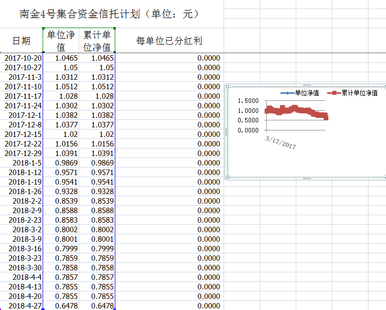 湖南信托-南金4号集合资金信托计划净值披露(2018年4月27日)