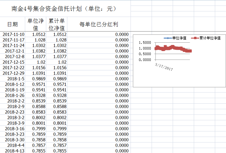 湖南信托-南金4号集合资金信托计划净值披露(2018年4月13日)