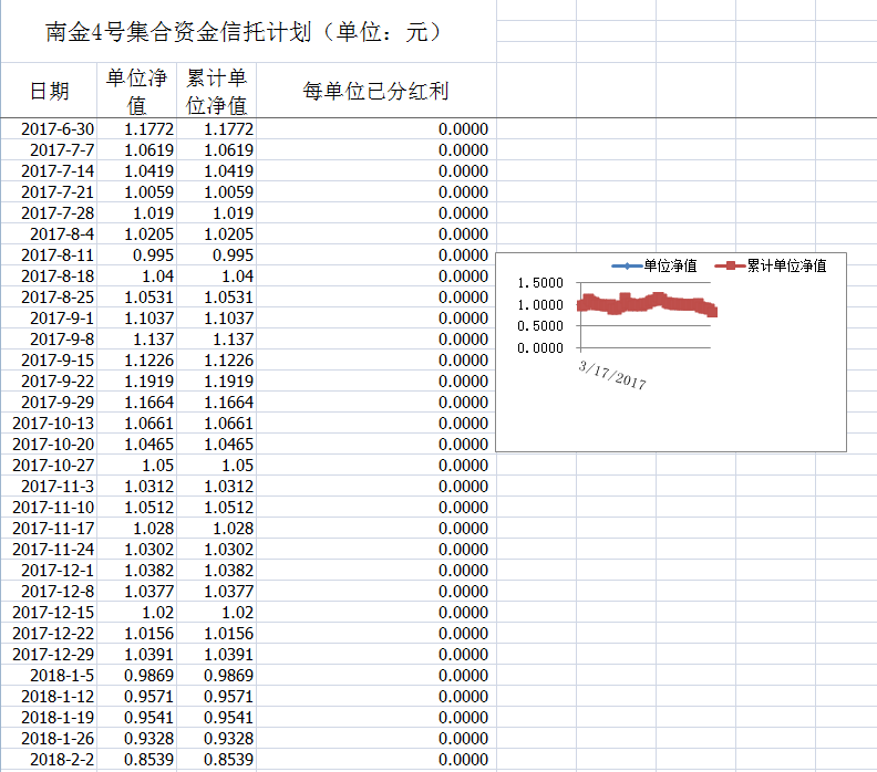 湖南信托-南金4号集合资金信托计划净值披露(2018年2月2日)