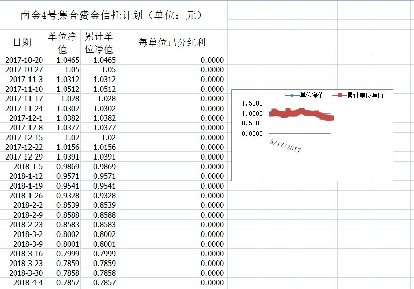 湖南信托-南金4号集合资金信托计划净值披露(2018年4月4日)
