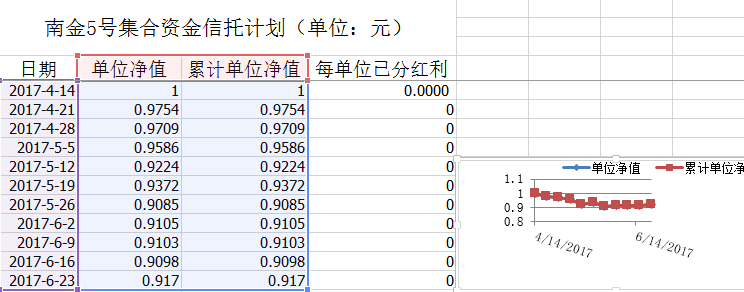 湖南信托-南金5号集合资金信托计划净值披露(2017年6月23日)