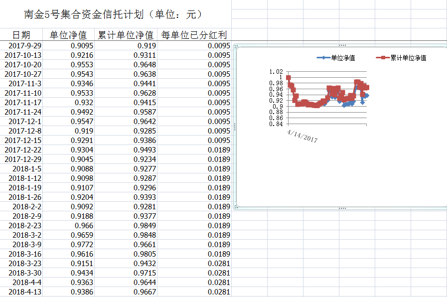 湖南信托-南金5号集合资金信托计划净值披露(2018年4月13日)