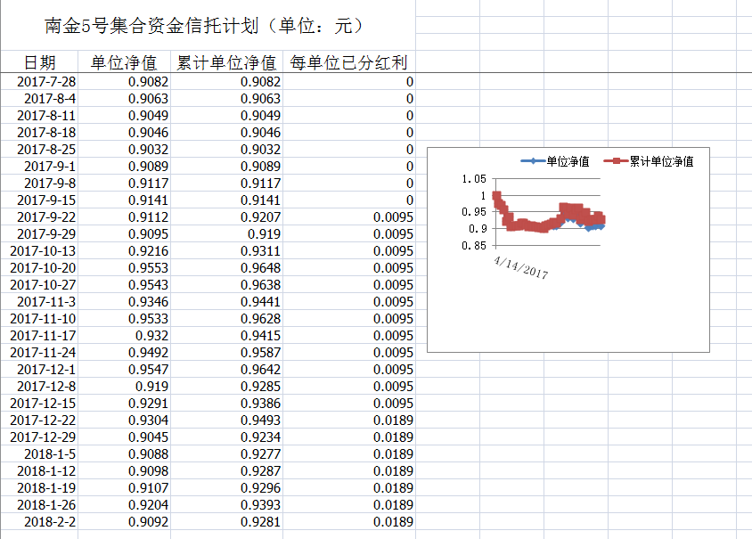 湖南信托-南金5号集合资金信托计划净值披露(2018年2月2日)