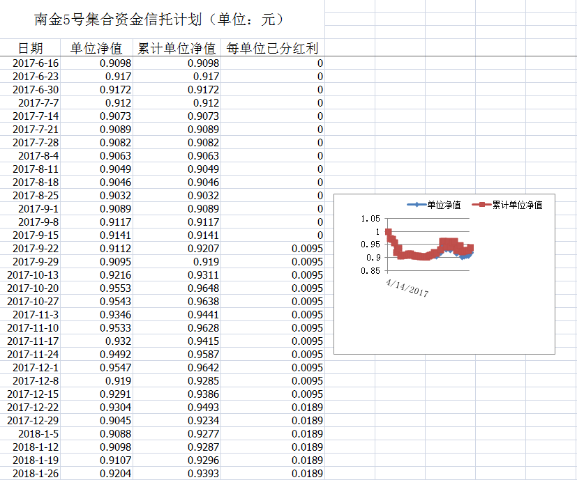 湖南信托-南金5号集合资金信托计划净值披露(2018年1月26日)