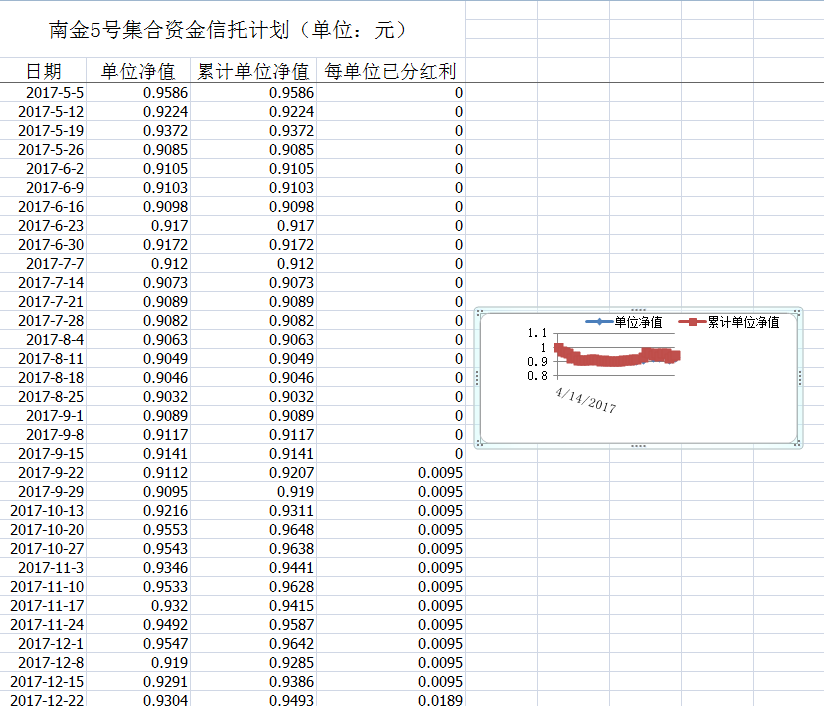 湖南信托-南金5号集合资金信托计划净值披露(2017年12月22日)
