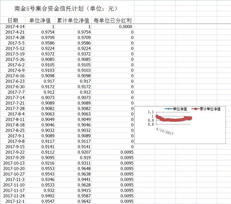 湖南信托-南金5号集合资金信托计划净值披露(2017年12月1日)