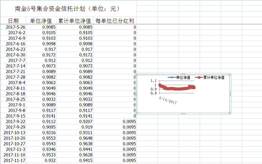 湖南信托-南金5号集合资金信托计划净值披露(2017年11月17日)