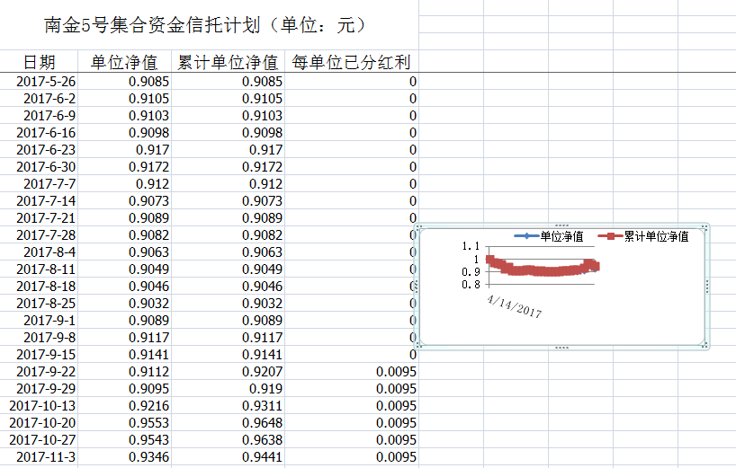 湖南信托-南金5号集合资金信托计划净值披露(2017年11月3日)
