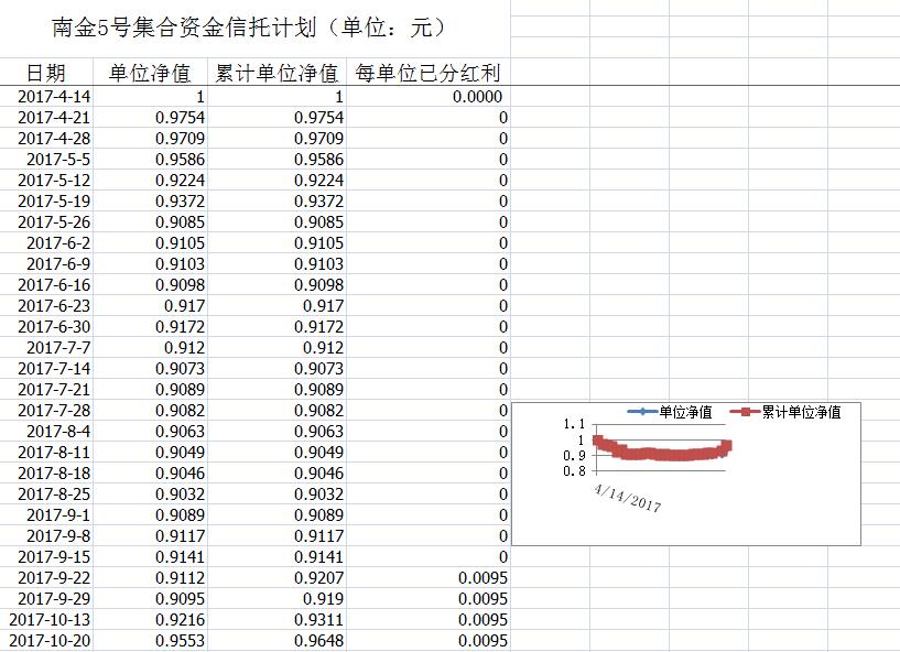 湖南信托-南金5号集合资金信托计划净值披露(2017年10月20日)