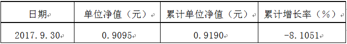 截止2017年9月30日,实现信托财产净值增长为:-8.1051%。