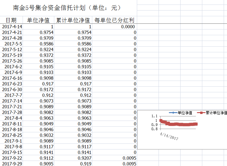 湖南信托-南金5号集合资金信托计划净值披露(2017年9月29日)
