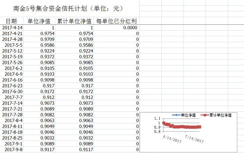 湖南信托-南金5号集合资金信托计划净值披露(2017年9月8日)