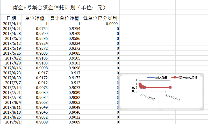 湖南信托-南金5号集合资金信托计划净值披露(2017年9月1日)