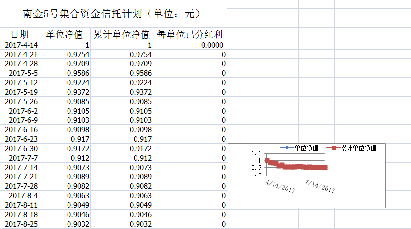 湖南信托-南金5号集合资金信托计划净值披露(2017年8月25日)