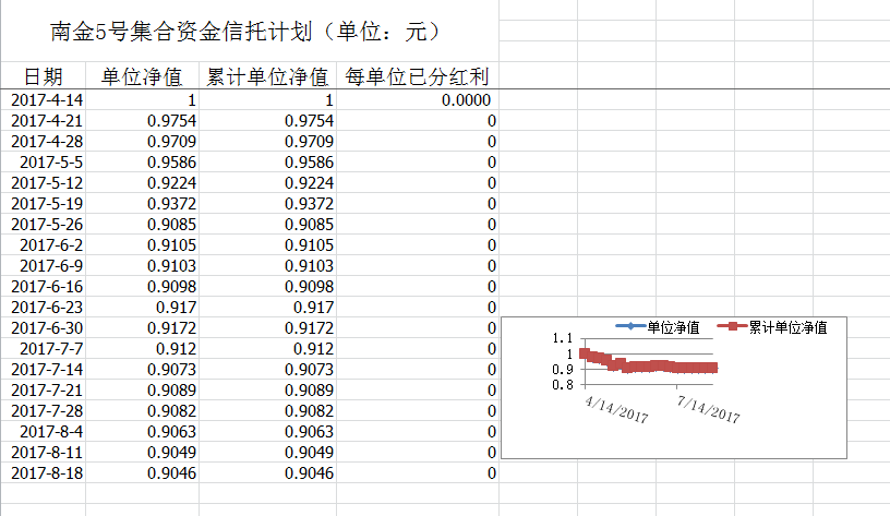 湖南信托-南金5号集合资金信托计划净值披露(2017年8月18日)