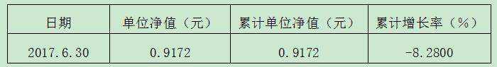 截止2017年6月30日,实现信托财产净值增长为:-8.2800%。
