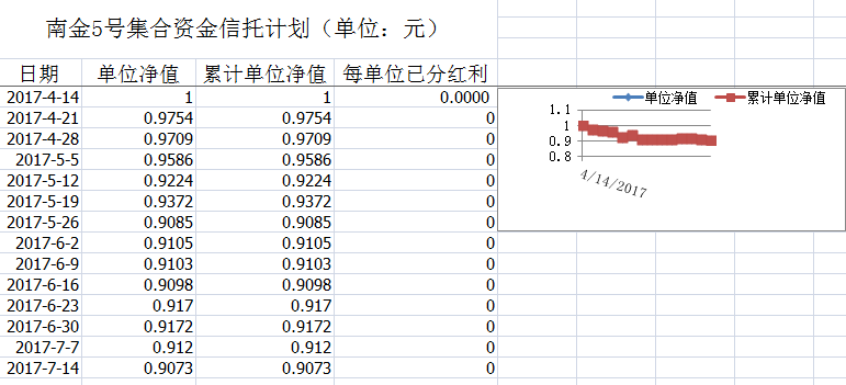 湖南信托-南金5号集合资金信托计划净值披露(2017年7月14日)