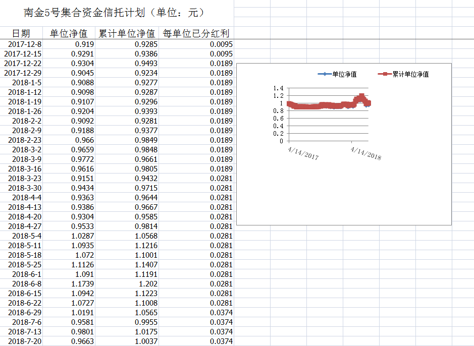 湖南信托-南金5号集合资金信托计划净值披露(2018年7月20日)