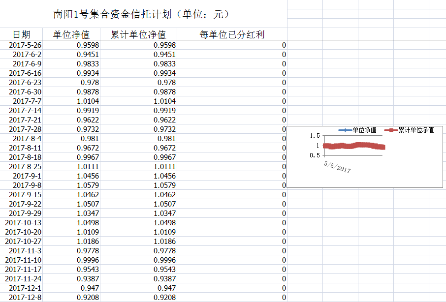 湖南信托-南阳1号集合资金信托计划净值披露(2017年12月8日)