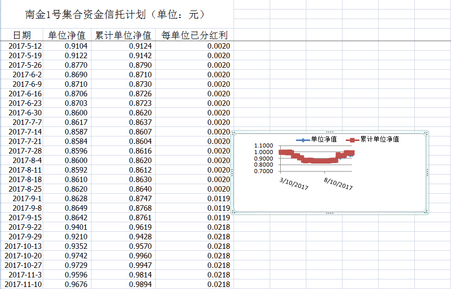 湖南信托-南阳1号集合资金信托计划净值披露(2017年11月10日)