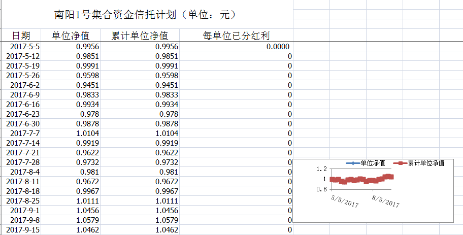 湖南信托-南阳1号集合资金信托计划净值披露(2017年9月15日)