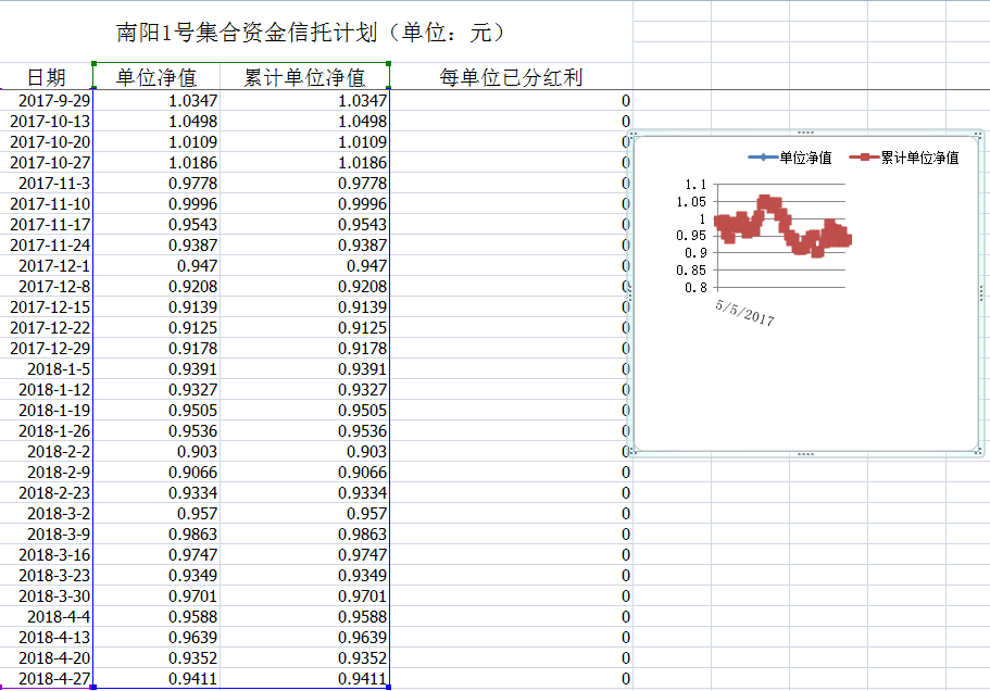 湖南信托-南阳1号集合资金信托计划净值披露(2018年4月27日)