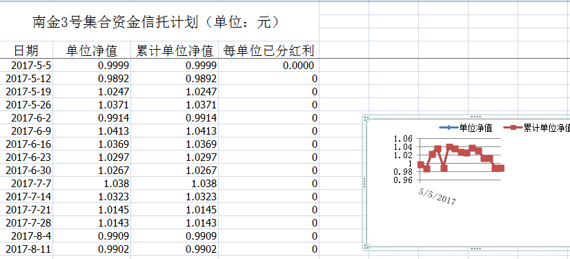 湖南信托-南阳1号集合资金信托计划净值披露(2017年8月11日)