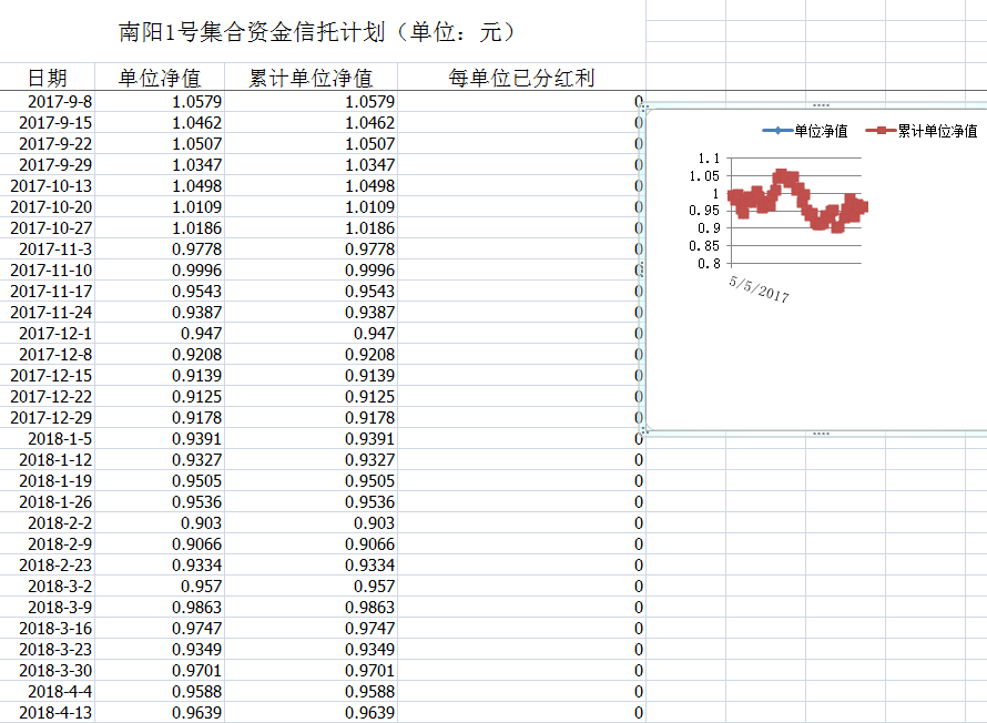 湖南信托-南阳1号集合资金信托计划净值披露(2018年4月13日)