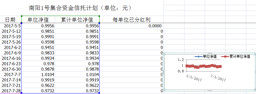湖南信托-南阳1号集合资金信托计划净值披露(2017年7月28日)