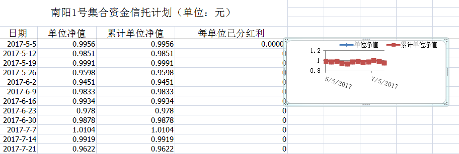 湖南信托-南阳1号集合资金信托计划净值披露(2017年7月21日)