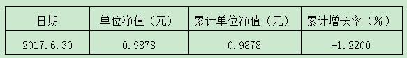 截止2017年6月30日,实现信托财产净值增长为:-1.2200%。