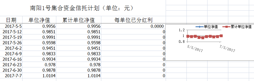 湖南信托-南阳1号集合资金信托计划净值披露(2017年7月7日)