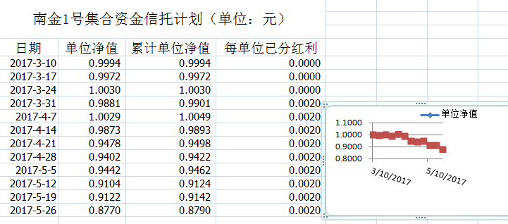湖南信托-南金1号集合资金信托计划净值披露(2017年5月26日)