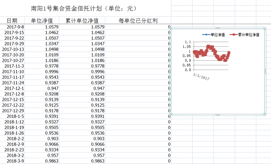 湖南信托-南阳1号集合资金信托计划净值披露(2018年3月9日)