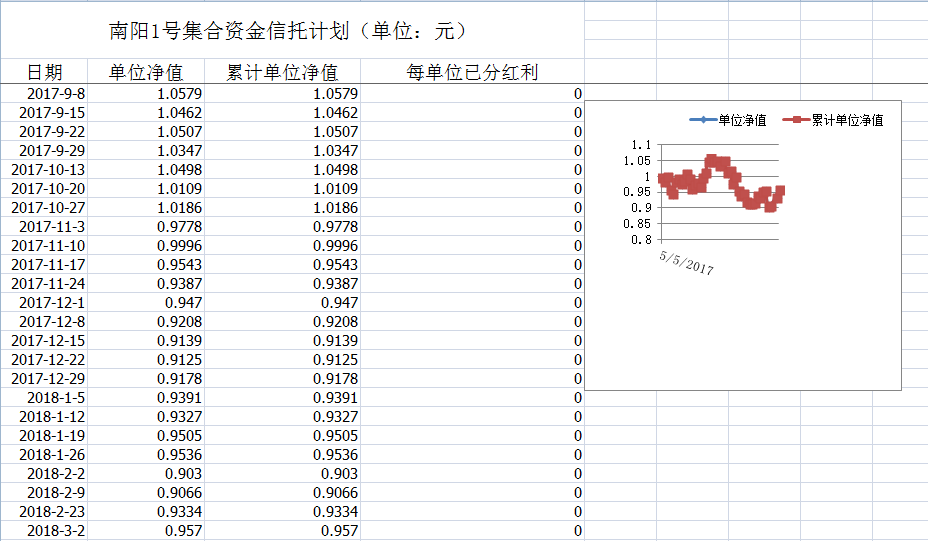 湖南信托-南阳1号集合资金信托计划净值披露(2018年3月2日)