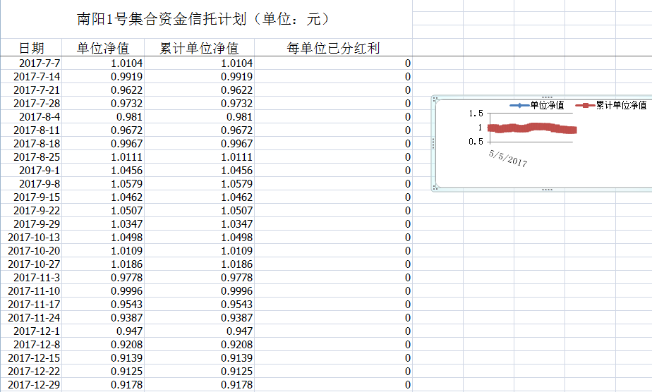 湖南信托-南阳1号集合资金信托计划净值披露(2017年12月29日)