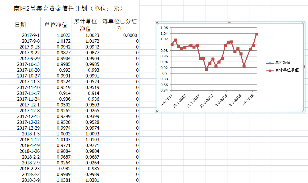 湖南信托-南阳2号集合资金信托计划净值披露(2018年3月9日)