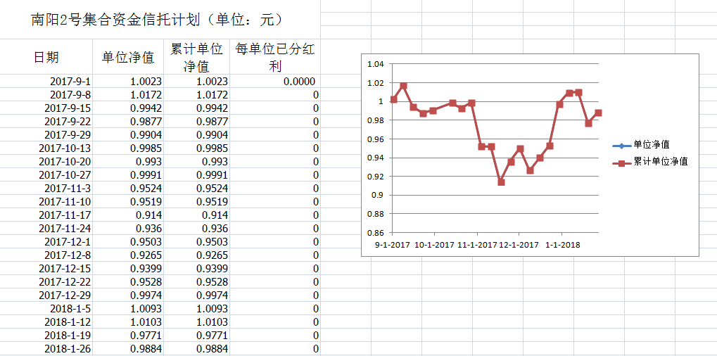 湖南信托-南阳2号集合资金信托计划净值披露(2018年1月26日)