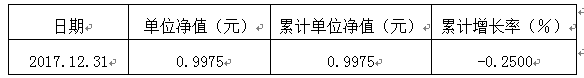 截止2017年12月31日,实现信托财产净值增长为:-0.2500%。