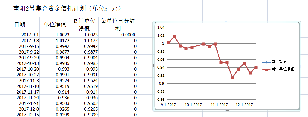 湖南信托-南阳2号集合资金信托计划净值披露(2017年12月15日)