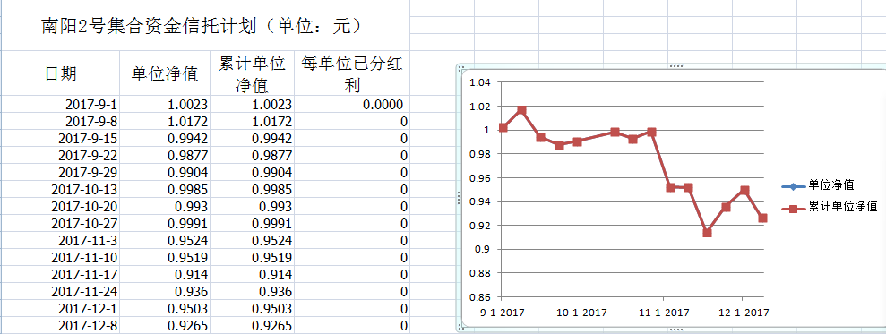 湖南信托-南阳2号集合资金信托计划净值披露(2017年12月8日)