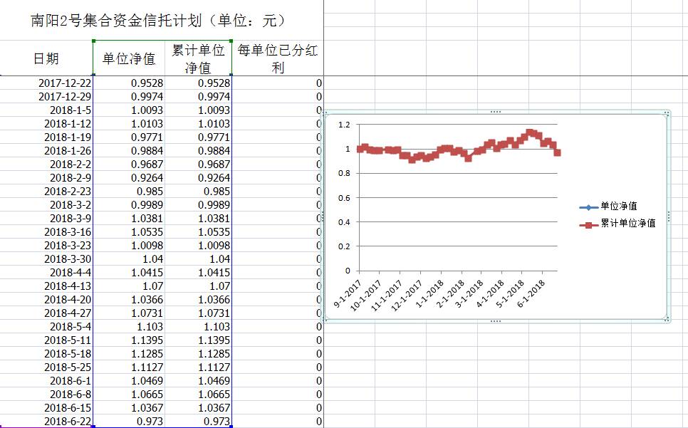 湖南信托-南阳2号集合资金信托计划净值披露(2018年6月22日)