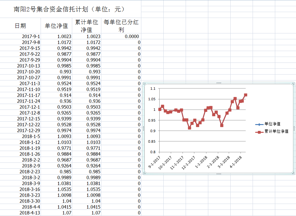 湖南信托-南阳2号集合资金信托计划净值披露(2018年4月13日)