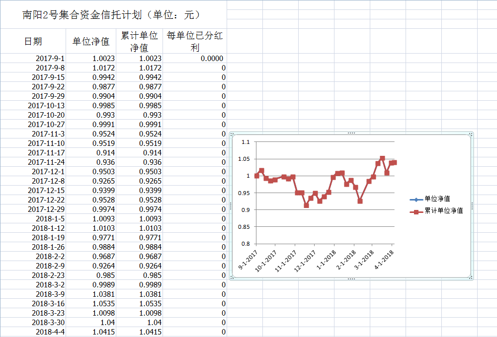 湖南信托-南阳2号集合资金信托计划净值披露(2018年4月4日)